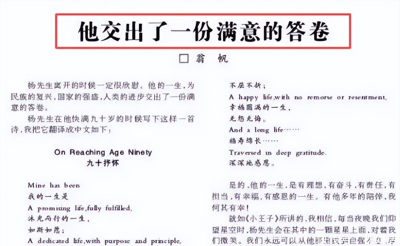 杨振宁先生的离去,是中国乃至世界物理学界的巨大损失。他留下的学术遗产与爱国情怀将长久激励后人。愿先生魂归星辰大海,也希望翁帆女士早日走出悲痛,重拾生活的光亮。