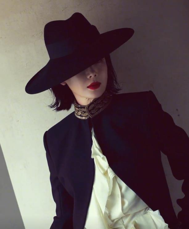 为了拍摄出更完美的照片,她还特地做了个蓬松的造型,有一种独特的韵味。